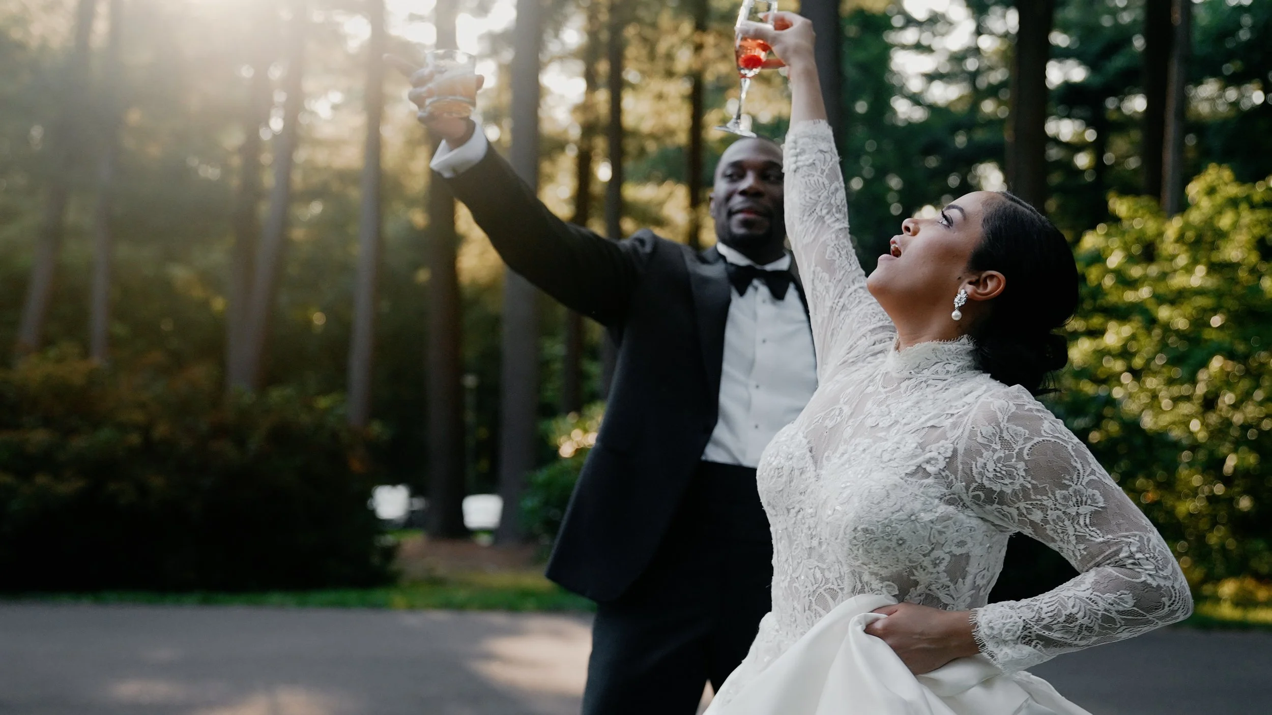 Nothing could drive that point home more than J’s own words. When she talks about loving Disney princesses as well as 90s R&B idols, that informed so much of our visuals. The contrast between regal shots within the mansion to the wild dance floor speaks so much to this couple’s personality. That’s why the overall edit has this early 2000s music video vibe but never loses the thread of just how grand and epic the whole night was.